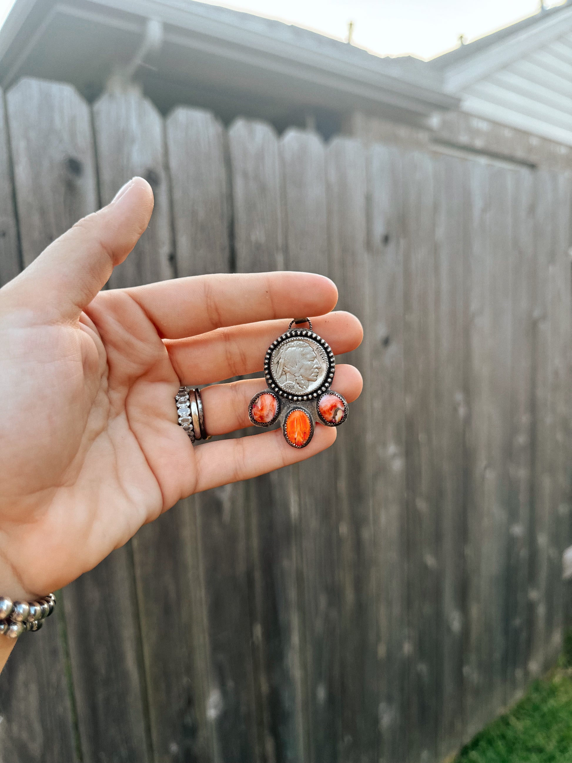 Sterling Silver, Spiny Oyster, Starburst Spiny Oyster, and a Buffalo Nickel (Indian side).